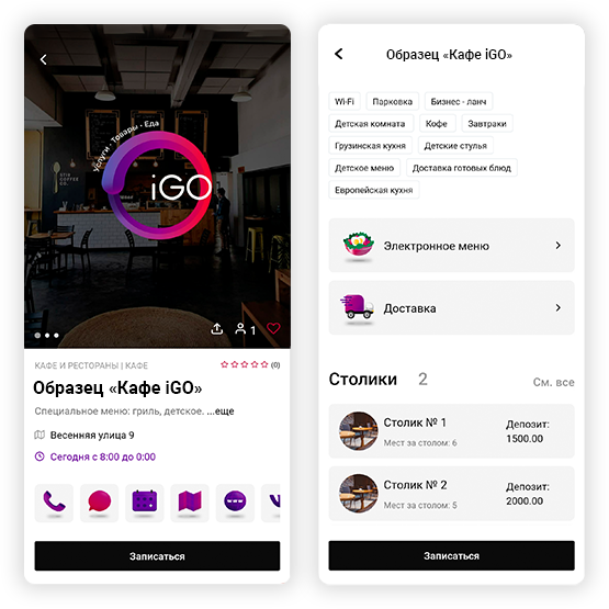 Ваша личная страница в каталоге iGO, где вы можете подробно рассказать о себе, особенностях заведения, поделиться контактами и фотографиями.